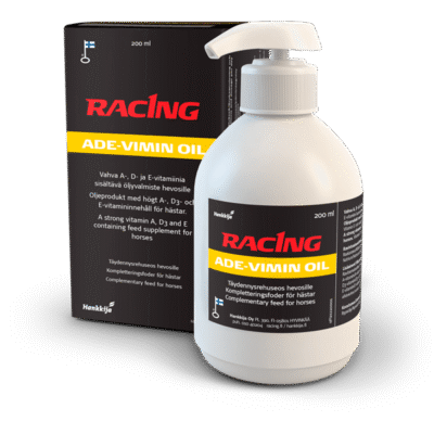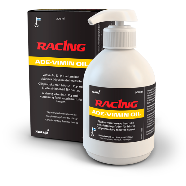 Maittava, rypsiöljypohjainen vahva ADE-vitamiiniliuos hevosille. Tuotteen E-vitamiini on luonnollisessa ja hyvin imeytyvässä muodossa (RRR-alfatokoferyyliasetaatti).