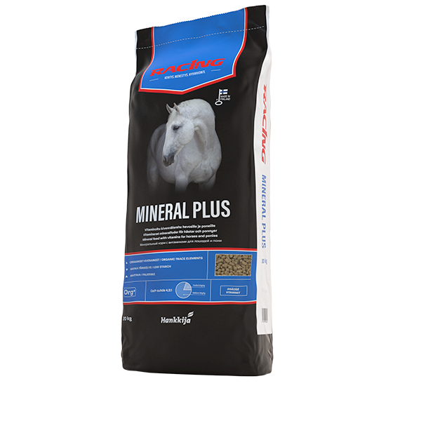 Racing Mineral Plus on rakeistettu kivennäisrehu, joka tasapainottaa kivennäisten, hivenaineiden ja vitamiinien saannin kauraan ja heinään pohjautuvassa ruokinnassa. Soveltuu erinomaisesti myös täydentämään kivennäisten saantia, kun täysrehun käyttömäärä on suosituksia pienempi. Tuotteen hivenaineet ja seleeni ovat hyvin imeytyvässä orgaanisessa muodossa. Kivennäis- ja hivenaineiden maittavuuden parantamiseksi rehuun lisätty muun muassa melassileikettä, seosmelassia ja vehnänlesettä.