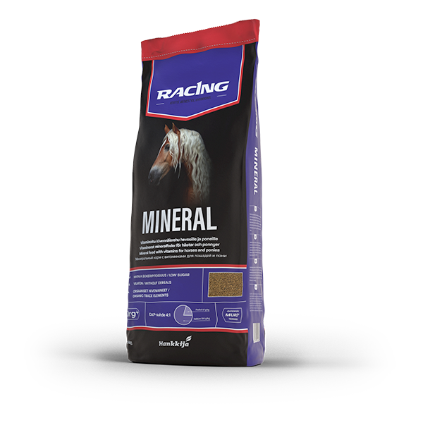 Racing Mineral on kalsiumpitoinen, viljaton ja matalasokerinen kivennäinen kaikille hevosille.