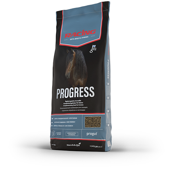 Racing Progress on energiarikas täydennysrehu (puolitiiviste) hevosille ja poneille kauran tai muiden väkirehujen täydennykseen. Tuotteen tärkkelyspitoisuus on matala ja sen monipuolinen raaka-ainesisältö ylläpitää ruoansulatuskanavan hyvinvointia.