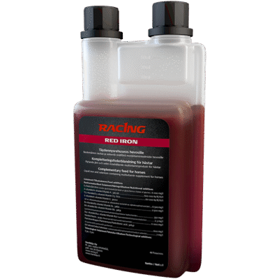 Racing Red Iron on nestemäinen rautaa ja seleeniä sisältävä monivitamiinivalmiste hevosille. Red Ironin sisältämä rauta on hyvin imeytyvää raudan glysiinikelaattia. Tässä muodossa rauta on sitoutunut aminohappoon ja imeytyy aktiivisesti ohutsuolesta elimistön käyttöön. Monipuolinen Racing Red Iron sisältää raudan lisäksi raskaassa valmennuksessa ja kilpailukäytössä olevalle hevoselle tärkeitä vitamiineja ja seleeniä. Red Iron täydentää hevosen ADE-vitamiinien saantia ja sisältää laaja-alaisesti rasituksessa olevalle hevoselle tarpeellisia B-vitamiineja. Kätevä annostelupullo.