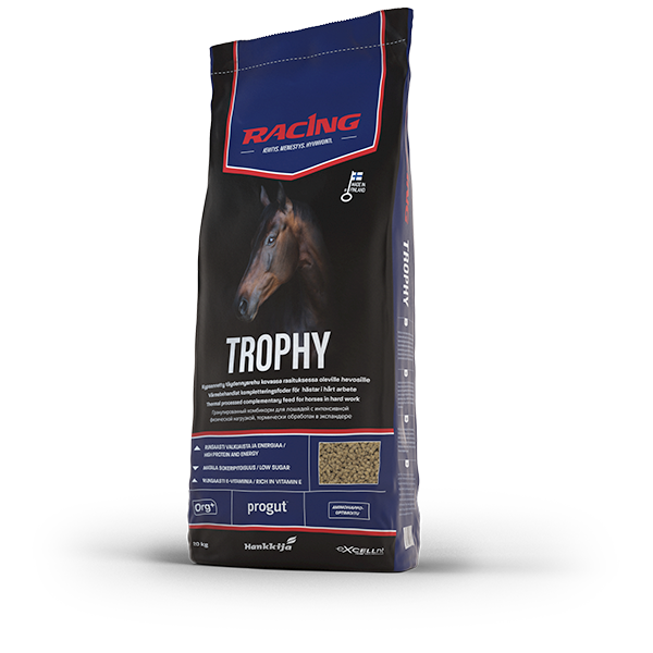 Racing Trophy on runsaasti energiaa (14 MJ) sisältävä rehu, jonka ravintosisältö on suunniteltu kovassa rasituksessa oleville hevosille.